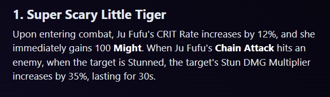 >>543608302With all the theorycrafting you do, you should first learn to read.>dailin wants 1 rupture and 1 attacker to maximize her buffNo. Only ONE ally gets her buff and as such only ONE ally can contribute the increased damage. Technically you can give this buff even to a stunner and just not get any bonus damage.>[EX Special Attack: Martial Salute] deals additional DMG based on the Specialty and Stats of allies with the [Inspire] effect when they received it:>When using [EX Special Attack: Martial Salute], a Quick Assist is triggered.Upon activating this skill, the previous character's [Quick Assist] will trigger. Allies responding to this Quick Assist gain the Inspire effect, increasing their DMG by 50% for 30 seconds;This ain't a team buff, like what for example Fufu provides. BIG difference.