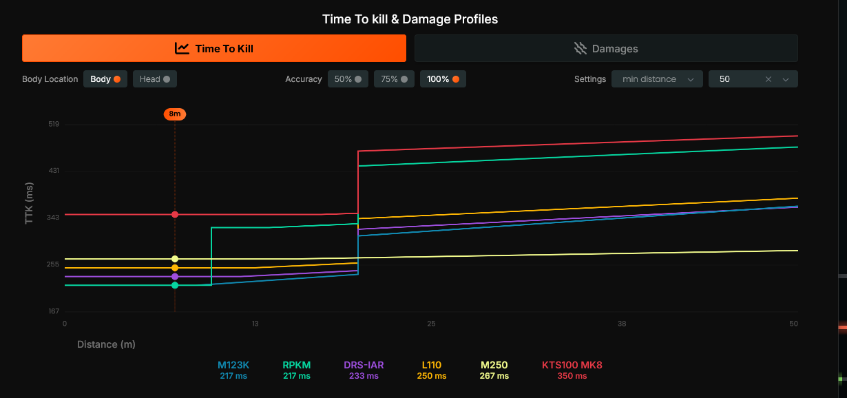 >>543591185>>543591316>>543591886Incorrect. There IS damage drop off with the M277 and M250, but it is pretty far out, like 100+ meters and THEN it starts doing 20 damage per bullet. Still, it is a four-shot kill (or three-shot headshot) out to around 100 meters. Yeah, it is insane, but the recoil and spread kind of hurt both of the weapons.