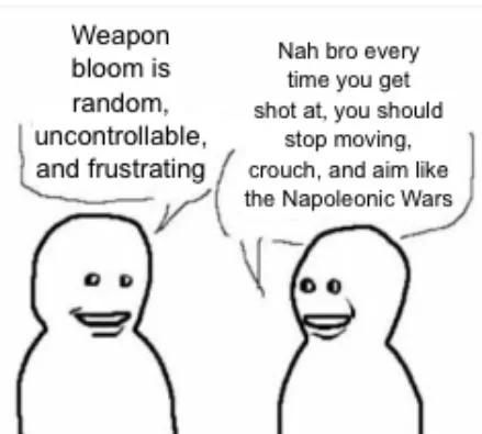 What are the odds we get some actual flinch/suppression mechanics?Hit someone upclose first? Too bad, their gun shoots faster. Hit a far away sniper 3-4 times? Too bad, he shrugs the boolets off. Absolutely fucking frustrating.