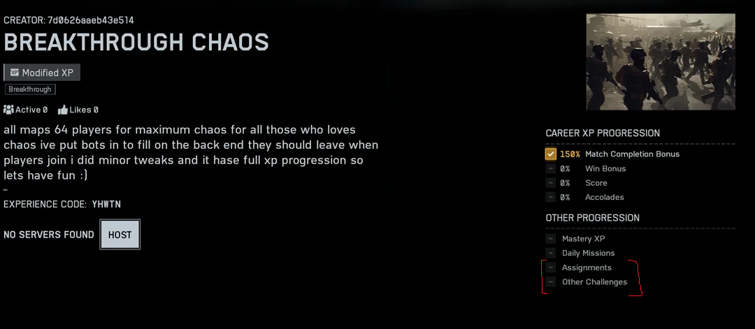 Honestly all they had to do was nerf xp/progression to 50% if you're playing in a portal/bot server. That's it. Just disabling outright is retarded. No one is going to spend 10 hours trying to get 3000 damage with the fire shotgun.