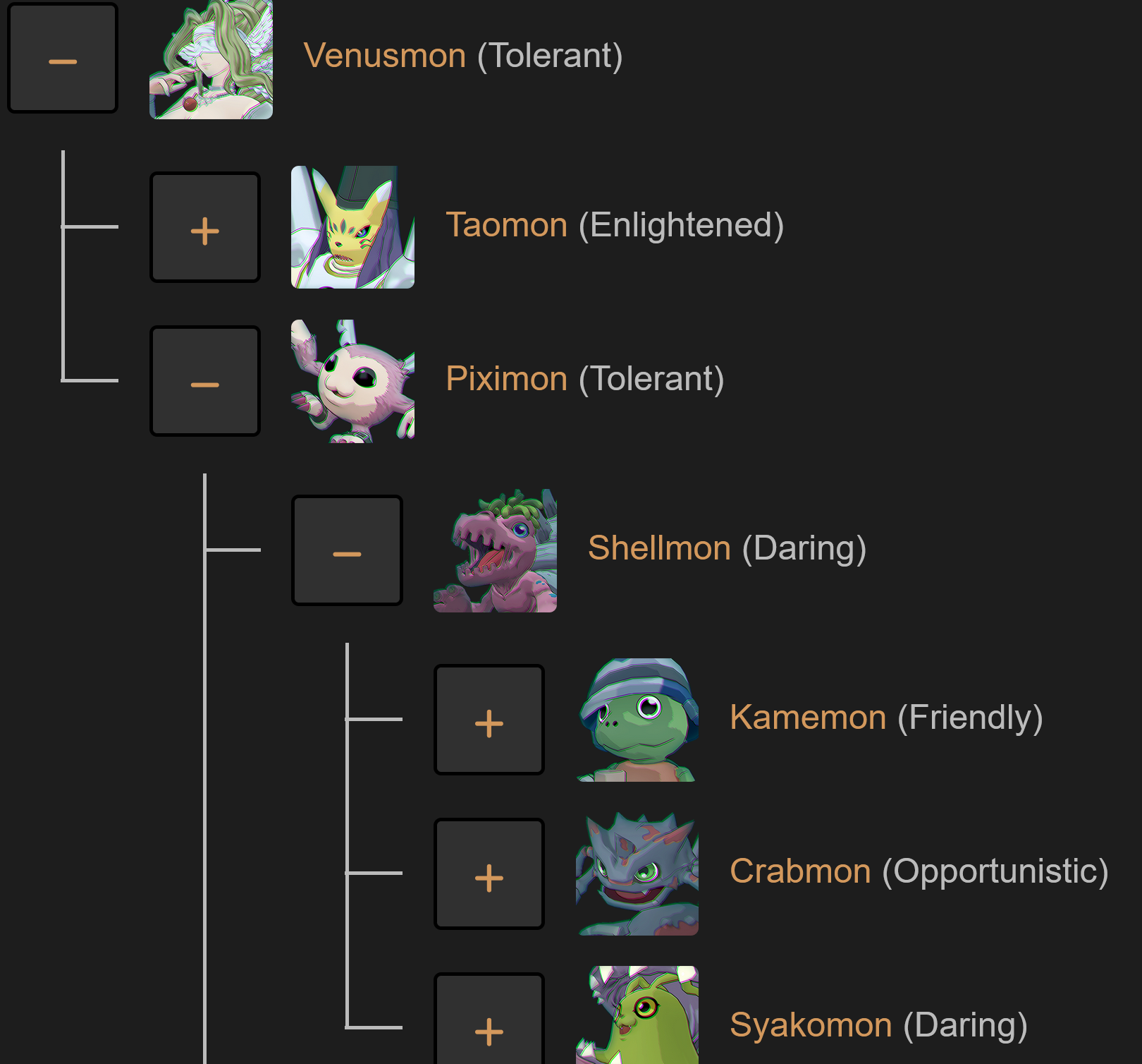 Is there a guide on all the silhouettes I'm tired of accidentally evolving my digimon into retarded shit like mojyamon