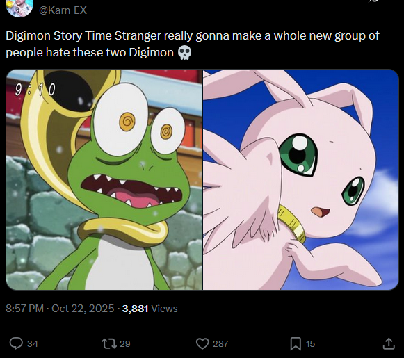 Previous: >>543493367Owlmon Edition>NEW TO THE DIGIMON FRANCHISE? HERE'S A STARTER GUIDEhttps://imgur.com/a/5uGdx0lGAME NEWS>Time Stranger Survey (Don't be cringe)Survey Link: https://survey.bandainamcoent.co.jp/jfe/form/SV_eKxUC4uQcdMfUA6Available until: October 30, 2025 at 7:59 PDT>Time Stranger is out now! The Site below contains the Digimon Roster & Evolutions for TS.https://api.skullbot.fr/digimon/IF LINK BREAKS, REPLACE "WWW" WITH "API">DragonRod's Digital Tamer Reborn 2https://dragonrod342.itch.io/digital-tamers-2>Digital Monster: Net Driverhttps://kuhamaven.itch.io/dm-net-driver>Other recent games:Digimon Story Time Stranger, Digimon Survive, Digimon World Next Order (PC & Switch Port)>Upcoming games:Digimon Alysion>Lost Evolution translation patch finally releasedhttps://pastebin.com/ddh1C8LMANIME NEWS>Digimon Beatbreak has begun airing. OP & ED belowhttps://www.youtube.com/watch?v=wlmn_P8YHr0https://www.youtube.com/watch?v=Je4IjQqlD84>EPISODE 3https://nyaa.si/view/2032865LIBERATOR NEWS>Comic Chapters & Web Novel Chaptershttps://digimoncard.com/digimon_liberator/en/comic/https://digimoncard.com/digimon_liberator/en/novel/>Official websitehttps://digimoncard.com/digimon_liberator/>Official JP themehttps://www.youtube.com/watch?v=YkmPTtp9D_o>Liberator synopsis and character detailshttps://withthewill.net/threads/30615https://digimoncard.com/digimon_liberator/en/character/>Liberator initial announcementhttps://withthewill.net/threads/30489CARD GAME NEWS>Current /tg/ /dcg/ thread>>>/tg/96743394MANGA NEWS>Digimon Dreamers online distribution updatehttps://withthewill.net/threads/30849>EN Reference Bookhttps://digimon.net/reference_en/>Line Buildershttps://digimon-lines.com/buildhttps://furudbat.github.io/digimon-partner-kit/[RESOURCES PASTEBIN [UPDATED WITH CS MOD DETAILS!]https://pastebin.com/LuTfCHDs