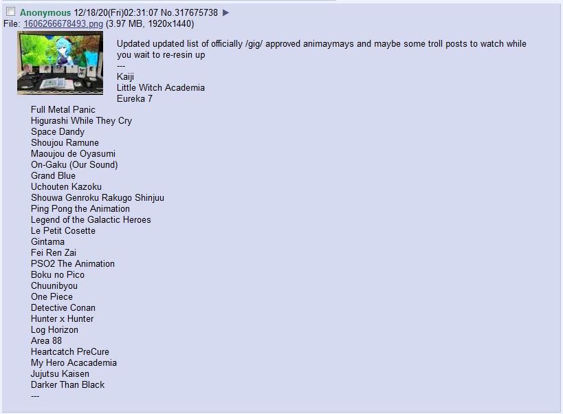 Ok /gig/, any anime to watch during the wait?
