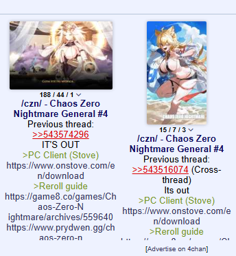 Previous thread: >>543574296IT'S OUT>PC Client (Stove)https://www.onstove.com/en/download>Reroll guidehttps://game8.co/games/Chaos-Zero-Nightmare/archives/559640https://www.prydwen.gg/chaos-zero-nightmare/guides/reroll-guide