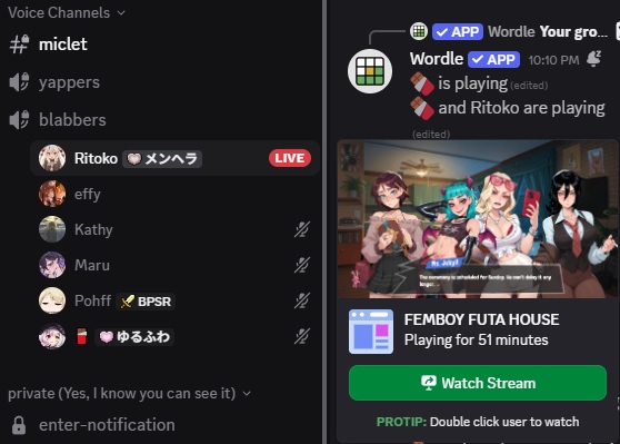 >>543670247>>543670446>schizos will save blackmail to use against you out of context three years later across multiple discordswhy would i want to join yotsuba again?