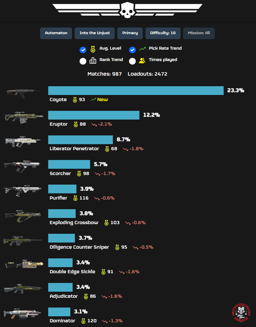 >>543663968>2000 loadouts>every day there are 100000 missions played>which is potentially 400000 loadouts>the data is not even representative for a single day, let alone a longer period of time