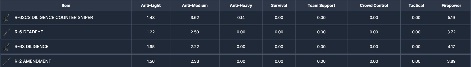 >>543661210there's no reason to bring any ap2 gun to bots, and people generally don't, and while Diligence definitely is one of the more favored ap2 guns botside, there are still easily two DCS users for each R-63 one