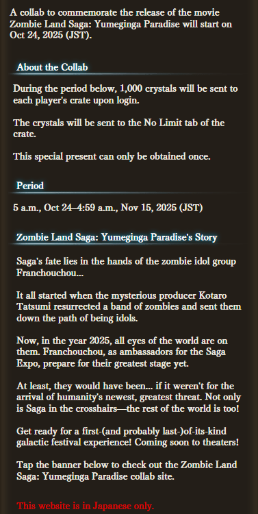 >Recent NewsMain Story Estalucia Part 3 - LiveCharacter Rebalances - LiveNew HL Raid Versusia - LiveQOL: HL Raid Disband - LiveQOL: Party Screen Redesign - LiveBook of Mischiefs Raziel skin available until 11/01Roadmap: https://gbf.wiki/User:Umikin/TimelineNew Main Story Arc - DecemberNew Raid series - DecemberSix & Nehan CD - December>October Schedule10/15 - 10/22 Imagination Overdrive! (Rerun)10/15 - 10/22 Rucksack Battles10/17 - 11/01 Alchemy Event10/22 - 10/29 Records of the Ten (Siete & Nio)10/29 - 11/06 Story event>Future Schedule11/05 - Neon Genesis Evangelion Collab11/21 - 11/28 - Unite and Fight (Wind advantage)>How to StartGo to https://game.granbluefantasy.jp in any Chromium-based browser>READ THE FAQ before posting - It will answer most of your questions if you're new or learninghttps://gbf.wiki/FAQ>Helpful links - These links contain useful information like important guides and other stuffGranblue Fantasy Toolbox - https://www.granblue.partyGBF Advanced Search - https://gbfas.ioGBF Grid and Teambuilding - https://gbfguide.comWiki Advanced Grids - https://gbf.wiki/Advanced_Grids/gbfg/ Mega Pastebin - https://pastebin.com/xHkyQTy8/gbfg/ Crew Directory - https://rentry.org/gbfgcrewsPrevious >>543607241