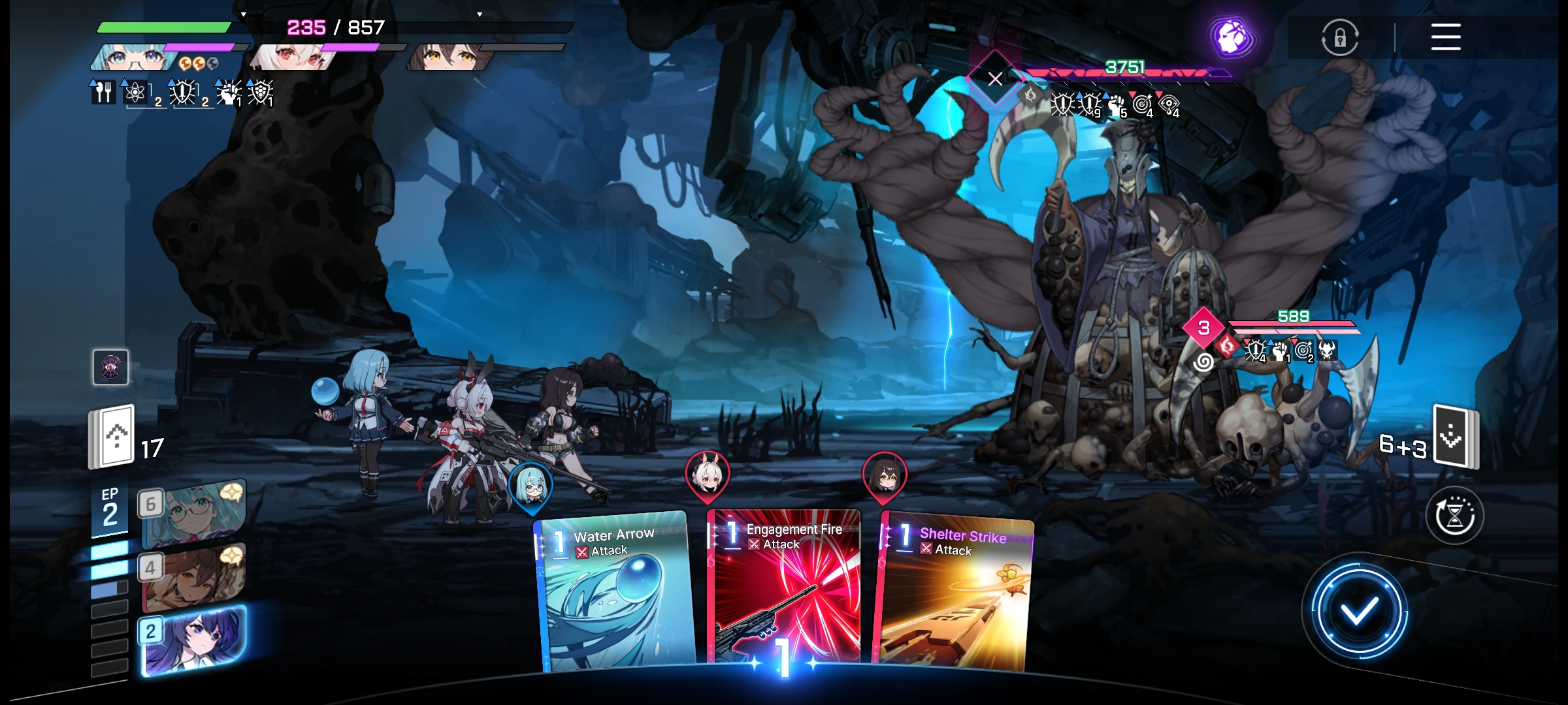 >>543739761The big number on the left of the enemy's HP bar. It goes down every time you play a card, and then takes its action when it hits 0, even if you've not passed yet.