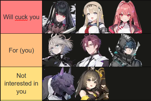 >>543741419Her an Mei Lin are apparently the best ST DPS right now but I'd say just roll with your dick.