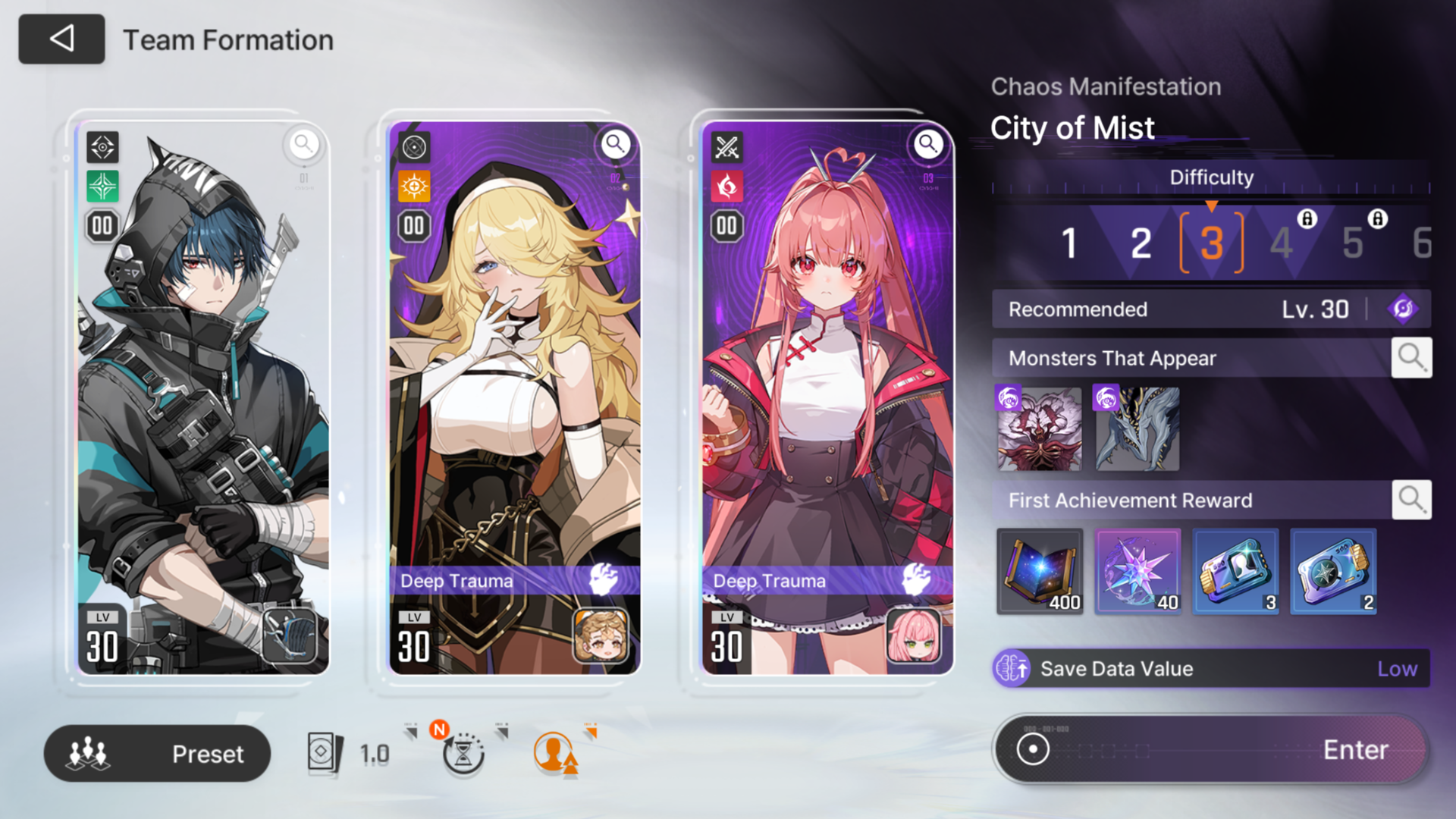 Previous thread: >>543694858>PC Client (Stove)https://www.onstove.com/en/download>Reroll guidehttps://game8.co/games/Chaos-Zero-Nightmare/archives/559640>codesNO CODES>reroll tipsRerolling hinges on you getting a 5 star within 40 pulls. Meaning you won't meet the special banner pityThat means you always roll on the standard banner until you get a 5 starAfter you get your 5 star, you star rolling on the special banner because it has pity at 50 pulls instead of 80.You essentially save yourself potentially 30 pulls.