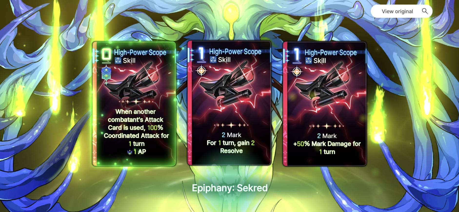 >>543722152Different epiphanies work for different builds and synergies between characters. There's also monster and neutral cards.