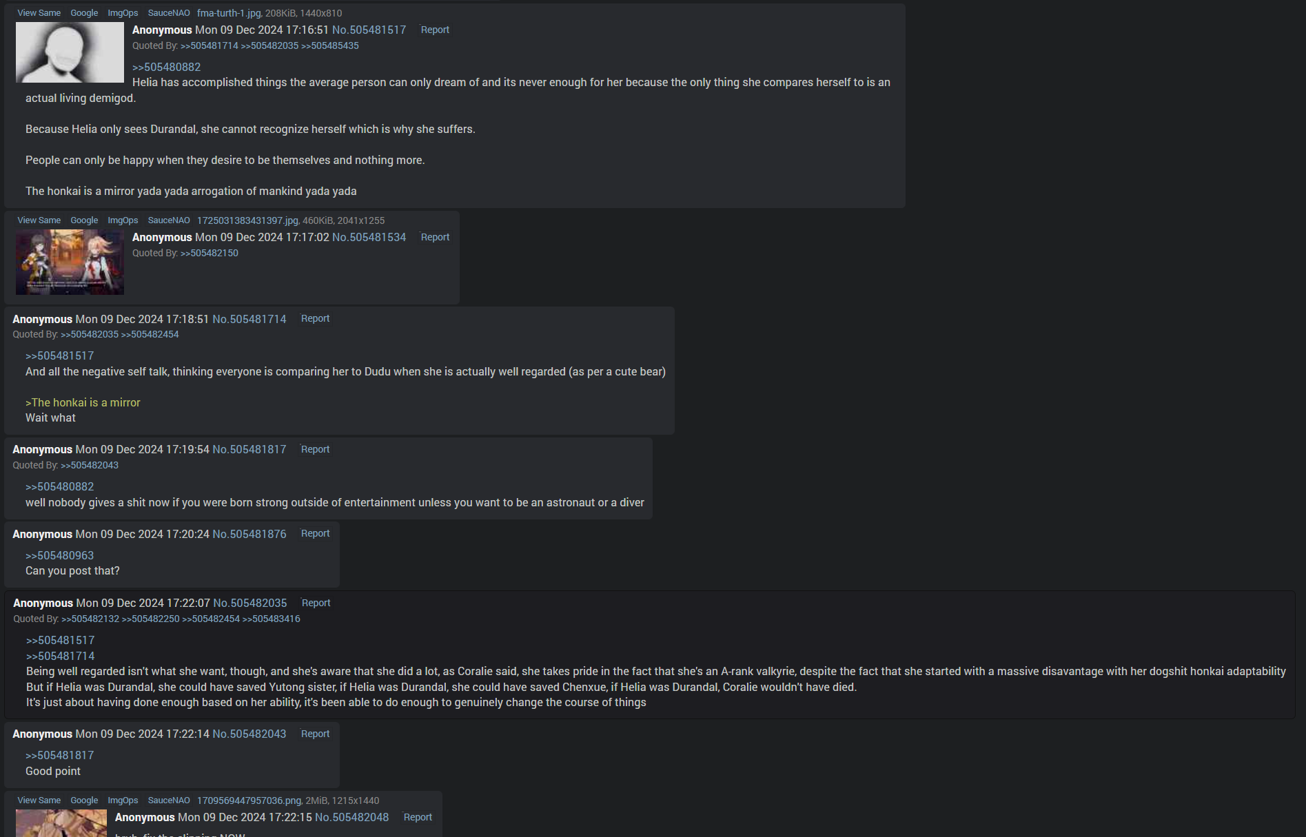 >>543744713Is everyone here that way? Imagine loving a character because they are meta instead of their sex appeal and personality.