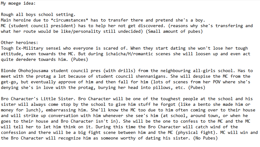 My moege idea I came up with on the train.Release date: 15 years~ whenever AI is good enough to make it for me.