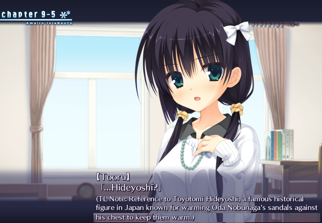 >>543755212>TayutamaCool but it's nothing groundbreakingIf I ran a VN loc startup I'd begin by picking licenses that people wanna see like Tsuriotsu or Oretsuba