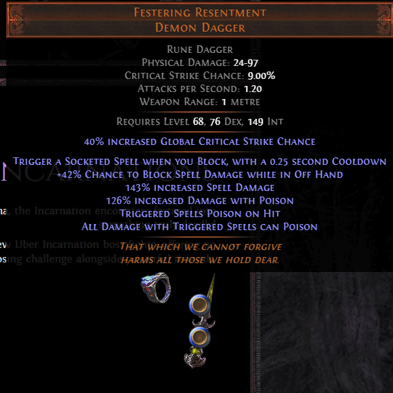 >>543804727The spell block unironically makes this T0 good. You can ignore the first line on the item. /pooegg/ doesn't realize that ALL triggered spells ALWAYS poison which is incredibly powerful.