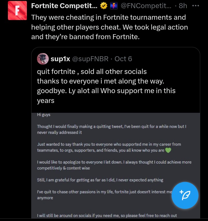 >>543837024>makes an emotional goodbye post >actually you cheated and helped others cheat