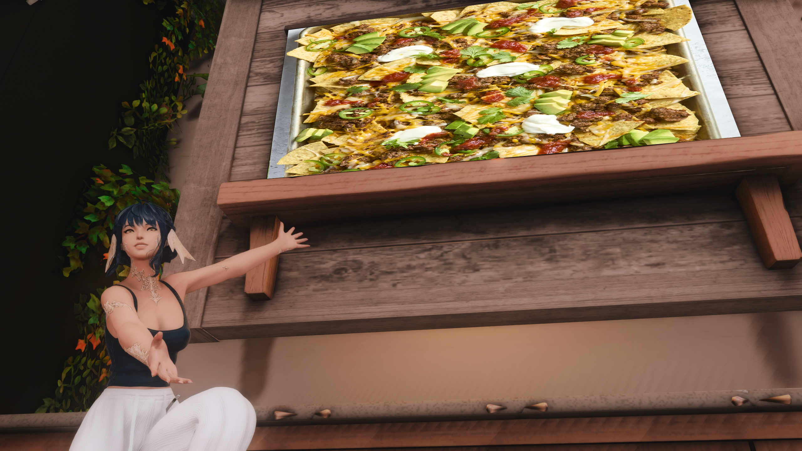I'm hungry! Pick something for a hungry femra to eat! She took nothing out to thaw so pretend she has a CUL level of 0 and has to order from the marketboard