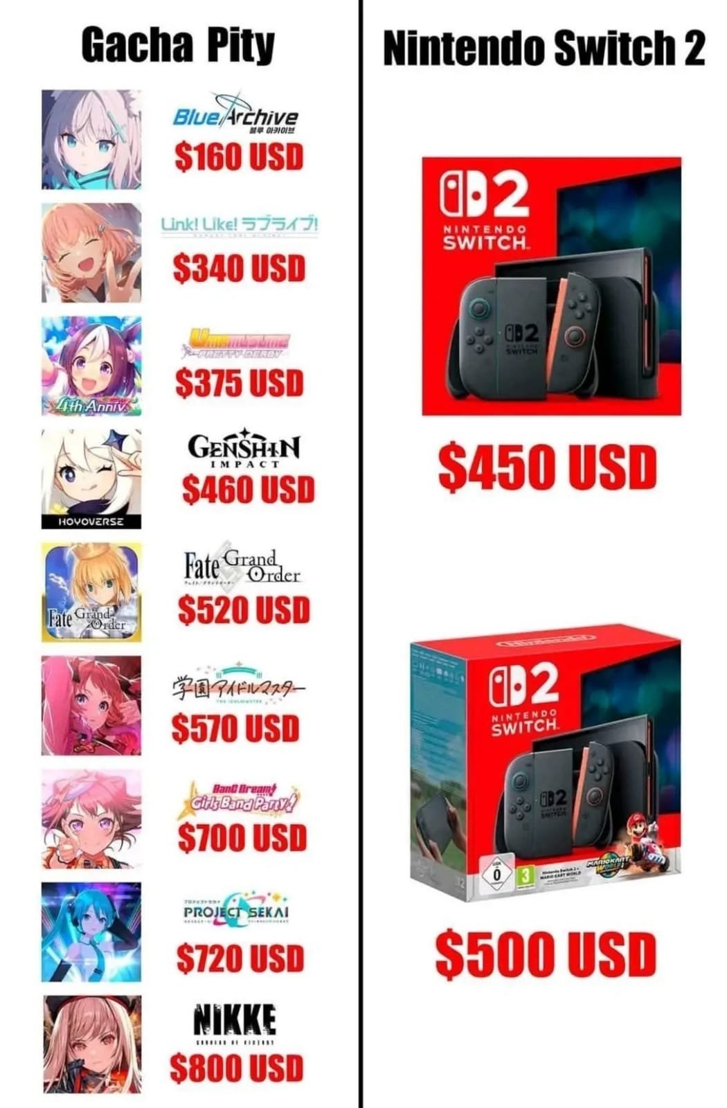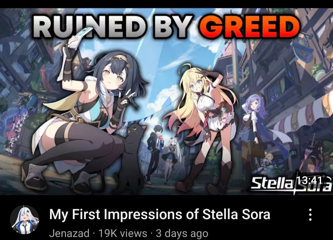 >>543866703Other anons haven't explained properly, but currently Stella Sora is the most expensive gacha in the entire market.1.>Cost for rolling got DOUBLED when the game was released but all the methods to earn rolling currency got REDUCED as well2.>Buying is expensive as fuck, you get LESS than 30 rolls for $100 USD, which is less compared to every other game in the market.>Battle Pass and Monthly also give LESS compared to every other game3.>In Stella Sora, you get LESS rewards as F2P compared to any other game in the market (yes, even less than Hoyo games)4.>In Stella, you ALSO need to roll for a weapon for your character.It's more expensive than any of the games in pic related.It's so expensive that even the whales in Japan and China complained loudly about it.And not to mention other issues like>Literally no content on release>Stamina gated with no way to refill except using money >use of MTL to translate text>Dates and other stories with the girls are COPYPASTED between each otheretcIs very likely that this game will actually EoS in less than a year because of the horrible management