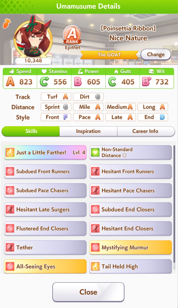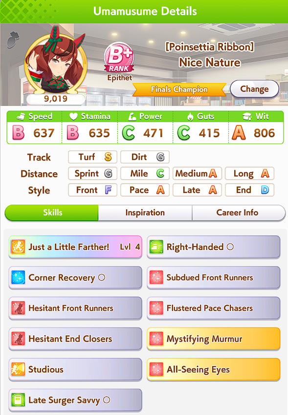 >>543877962no, for fronts style + distance corners is a good buy.for what its worth I've gotten good mileage out of corner skills on pace too because getting to the front of the pace chaser pack is part of your win condition. too many losses from getting blocked by slower pacers