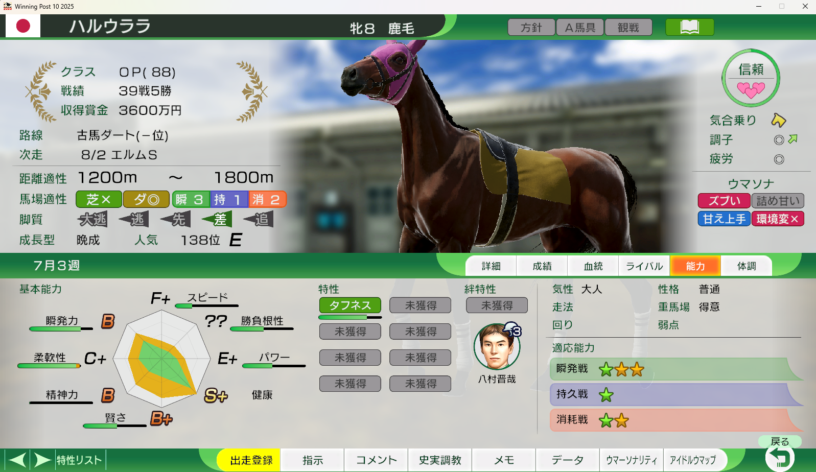 this tacchy's just won 3 out 5 rooms and generally has been doing MUCH better than my other maestro + thh tacchy, despite being several lengths slower on the umalatormaybe stacking recoveries is not actually a meme