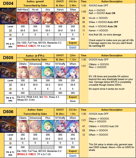 TP Charge masteryTP charge is decoupled from the other masteries for cooking purposes (read June's announcement for more info). The share codes provided in this post will use specifically TP Charge 4.2, but all TLs should specify which TP Charge value(s) they work for regardless. Don't worry if you have gone higher than 4.2 or are still below it, you will still be able to do hits.Standard (pleb) tree for October:Elemental Level = 910Elemental Skills = Page 6 Section 6 (S38) 4/4/4. Actual number of nodes into this section will vary, with the most ambitious non-refreshers being in P6S7/8 instead.Master Skills = MS73 (Attribute Bonus Up)Role Mastery = 4.3 everything except TP Charge.Shorthand: Ele 910, Page 6 Section 6 4/4/4, MS73, All Masteries 4.3Share code for this tree: TZOOA2ECJNdJX9r6lwUAs usual, notate def nodes needed for each comp. It is expected that every account has done at least their first lv1-5 runs of Dawn Labyrinth and skipped passports until the start of CB to reach at least Xmill labyrinth score, otherwise you may be behind on progression. (to be filled later kekw)Whale SpecEle 1000, max tree (Page 6 full), MS103, All Masteries 5.2 except TP ChargeShare code for this tree: W1HoA34CBWdf7vrXBgUnit Gears38-5 for all units, it does "technically" lose trace amounts of bulk on some DPS but if that happens to matter we have bigger issues.