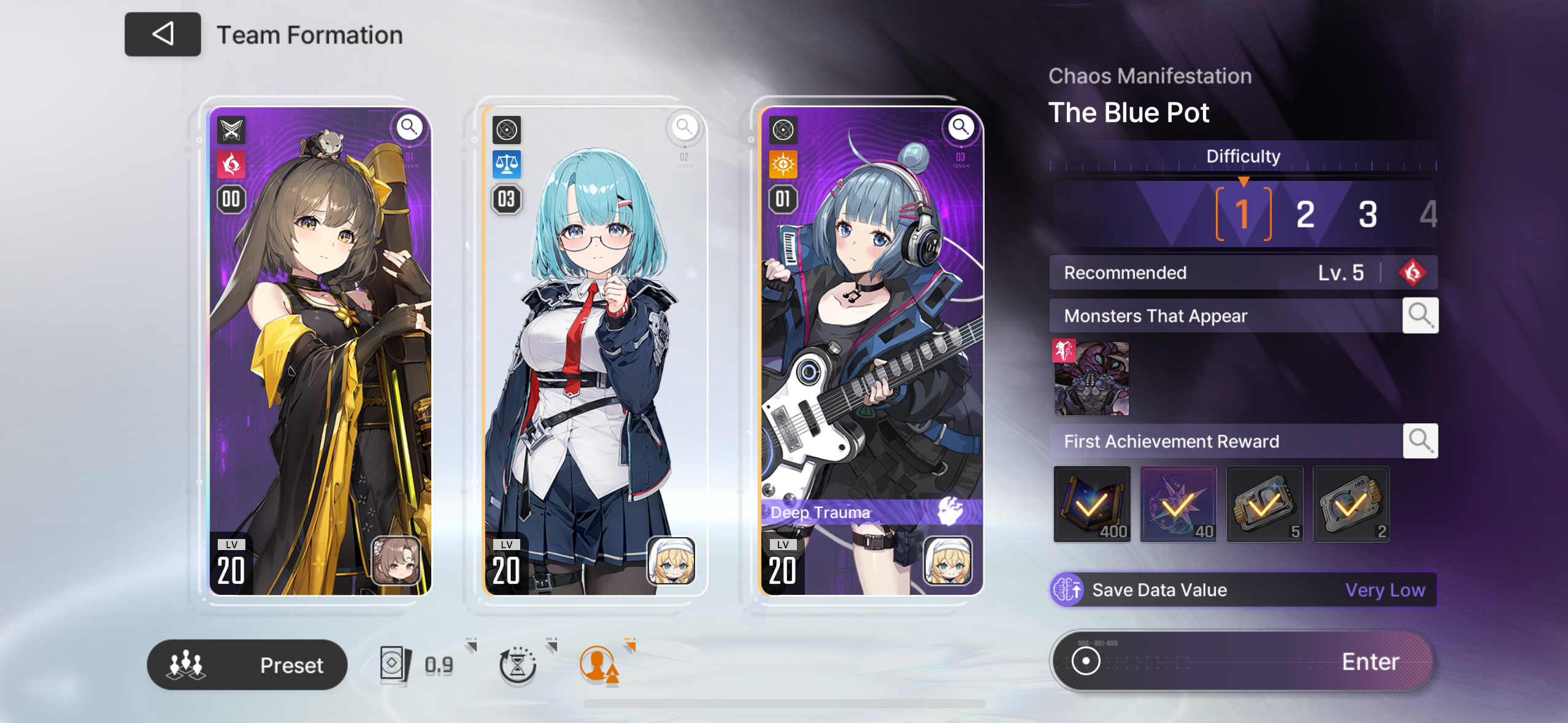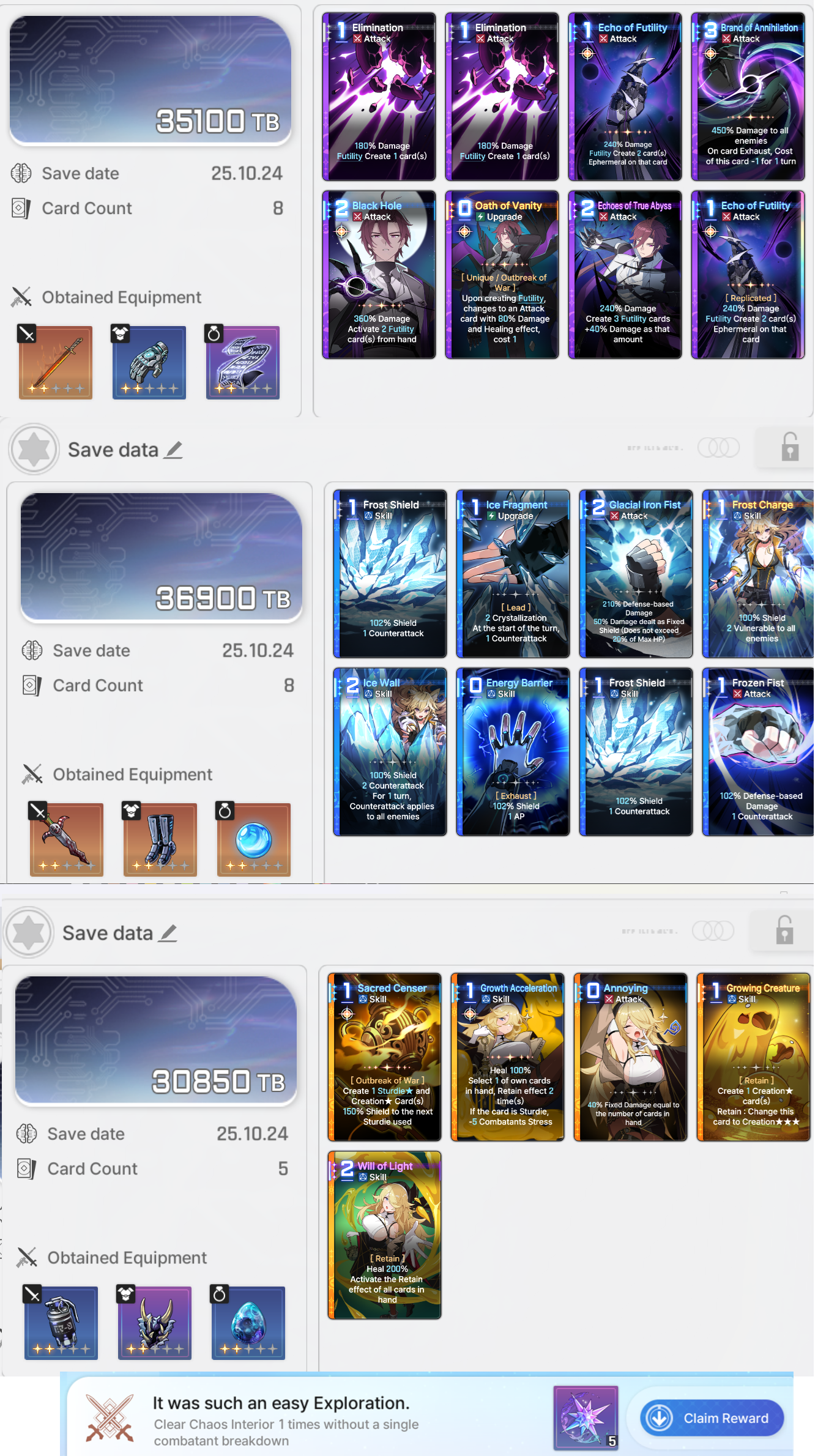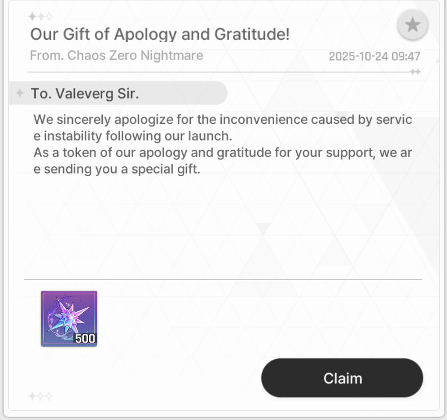 Previous thread: >>543868872>PC Client (Stove)https://www.onstove.com/en/download>Reroll guidehttps://game8.co/games/Chaos-Zero-Nightmare/archives/559640>codesNO CODES>Reroll tipsRerolling hinges on you getting a 5 star within 40 pulls. Meaning you won't meet the special banner pityThat means you always roll on the standard banner until you get a 5 starAfter you get your 5 star, you star rolling on the special banner because it has pity at 50 pulls instead of 80.You essentially save yourself potentially 30 pulls.>Why are my cards not savingYou're doing low difficulty chaos stages.Level up, progress more and unlock harder abyss stages so you can save better stuff and have access to better cards and gear.This system is in place so people don't grind for perfect godly decks on low difficulty chaos stages with zero risk while ignoring the harder ones.