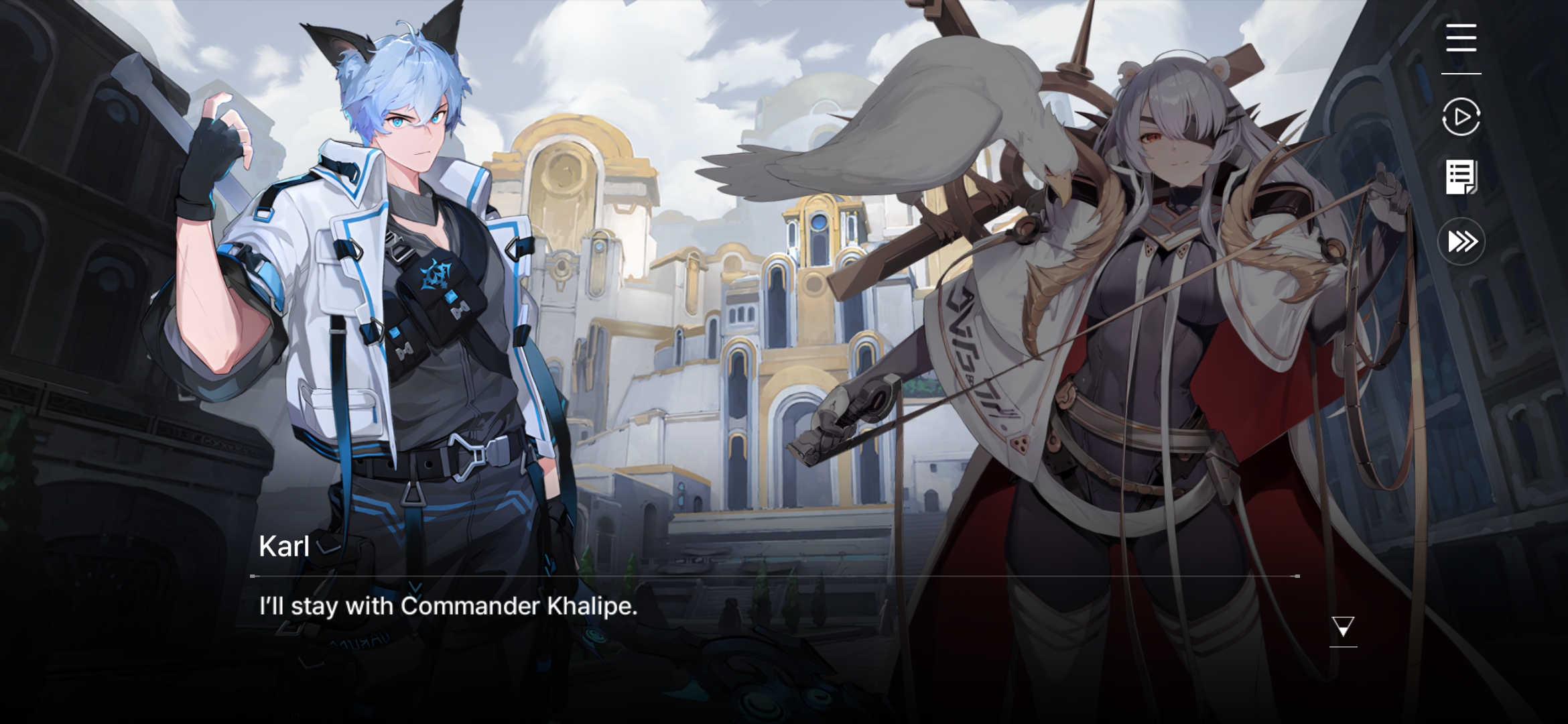 >>543907248>>543908370He literally says "I'll stay with Commander Khalipe" though