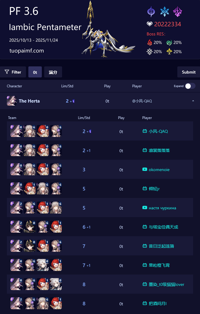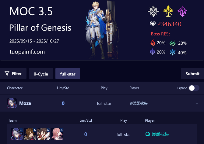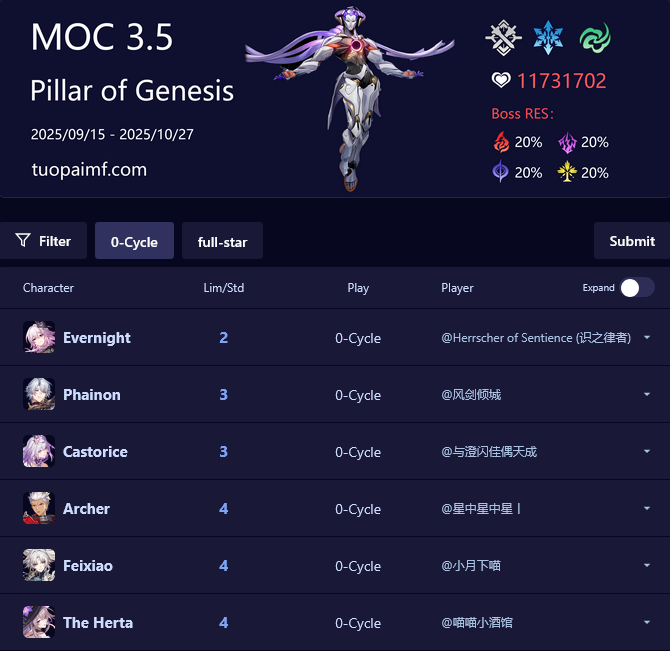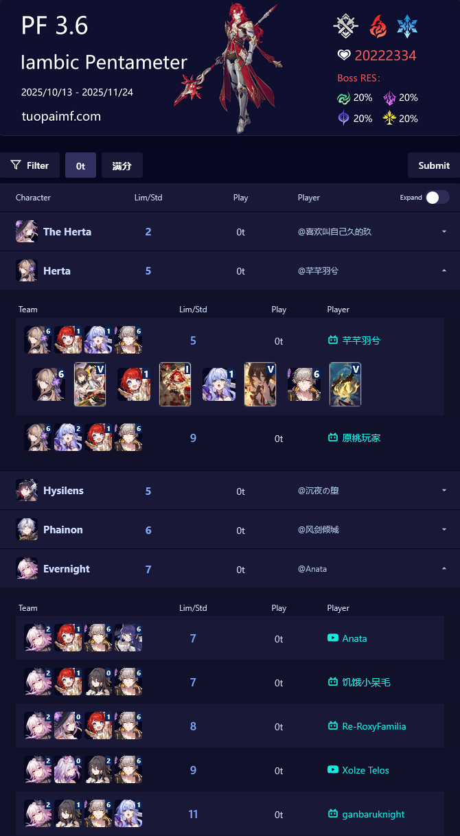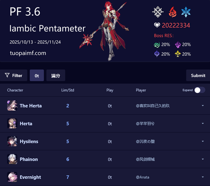 >The Dahlia (5* Fire Nihility) - https://www.hoyolab.com/article/41861857
