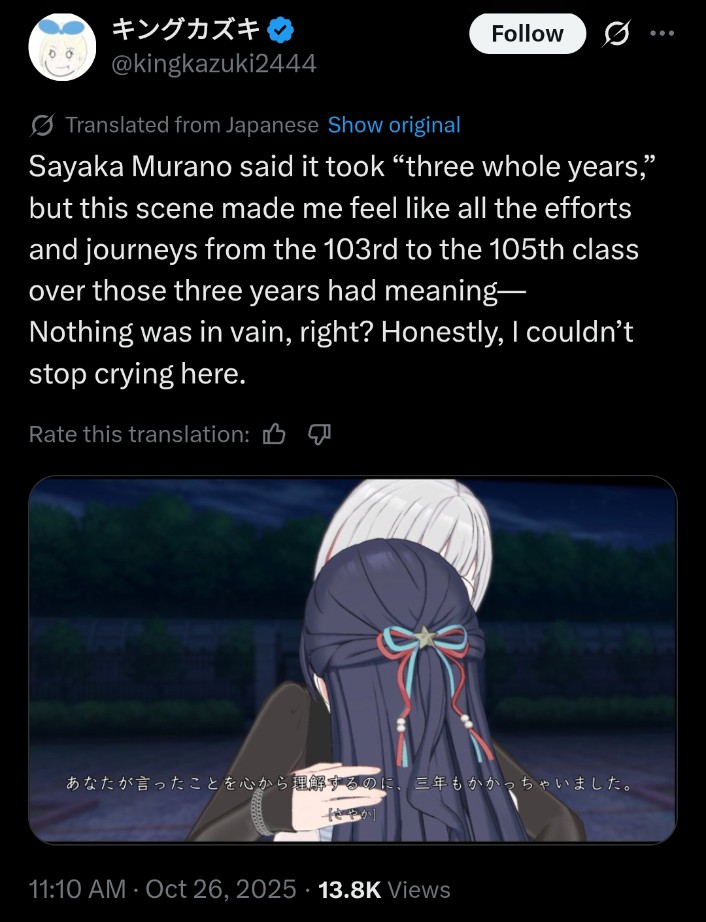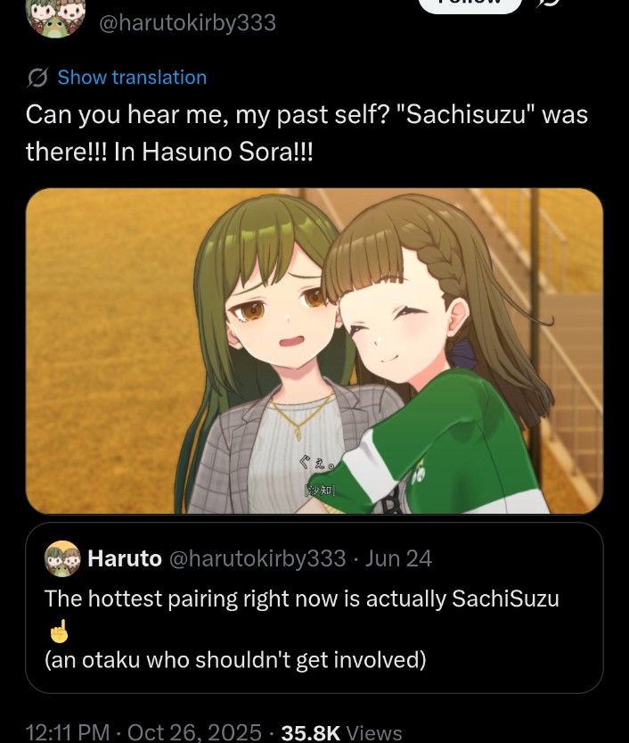 9 hours until the next hasu story drops and we learn the truth about sachi's return