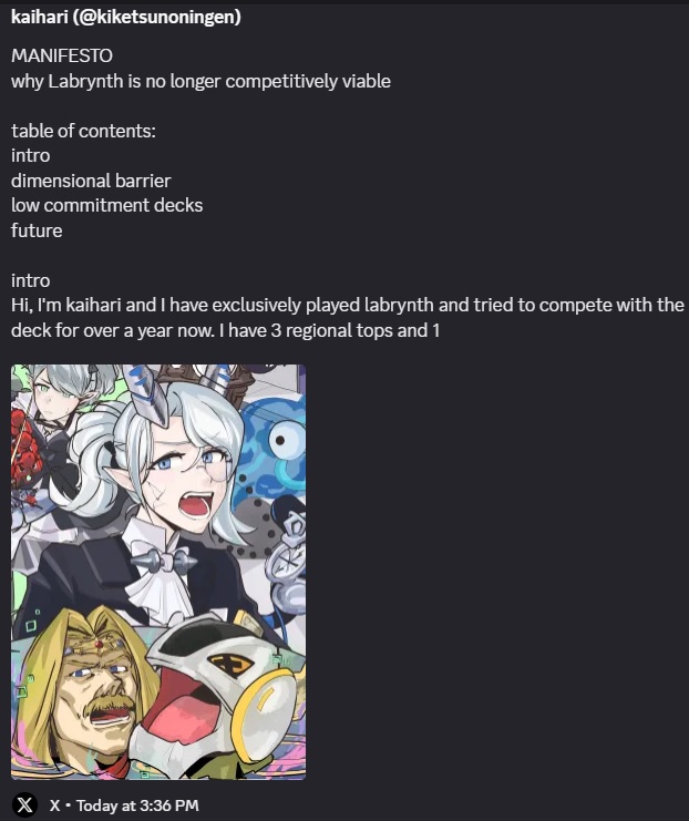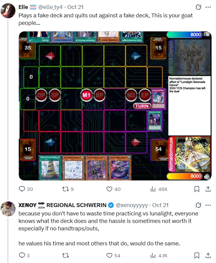 >>543967095>TCG still has influence over the banlist.Well obviously, and shit like Electrumite is a decision by the KoA branch, but the point is that the TCG presumably has to run over everything with the OCG that gets some say over the banlist compared to them doing whatever they want with GenesysIt's weird to claim that the TCG is suddenly more than happy to explain their thoughts on the banlist for the TCG-only format because they ARE fully under the OCG when that shit never happened back when banlists were merged, and almost everything we know about the inner workings of Yugioh comes entirely from the TCG. We know former TCG designers and that they are allowed to discuss their experience at Konami and design choices, we know Jerome is allowed to talk about what goes down in R&D such as his thoughts on Electrumite or how Striker used to be BETTER during the design process, we know the artists for TCG exclusives drawn by western artists because KoA doesn't spazz out at the idea of Konami employees being credited for their work, it was the TCG that wrote the cope article for the March/April 2012 banlist, and we have countless Tewartisms to make fun of because he wrote in Pojo meanwhile we have nothing on who even works in the OCG. Why would the OCG, which has never been even remotely open about explaining any of their decisions past "we kept VFD to 1 so it won't be that oppressive anymore" be secretly hands on for a TCG-only format and give frequent updates in perfect English utilizing modern western memes like "skill issue" or "we know but we just can't prove it"?