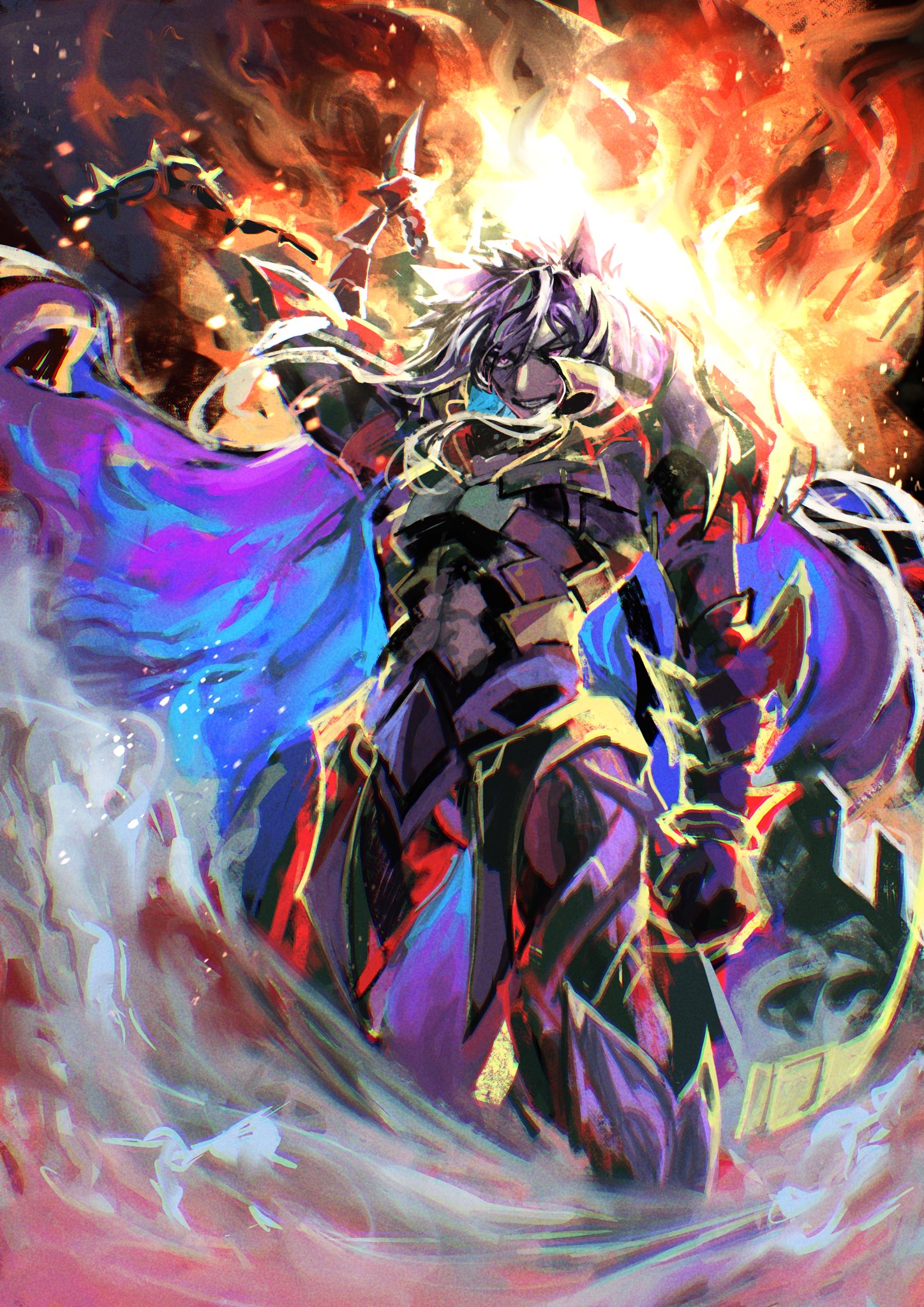 New Albaz is just Albaz with Sanctifire power fully turned on.The concept art of his alt art shows he can do that by opening the eye Fleurdelis had cut.We still need 2 more retrains of Ecclesia and Albaz that were mentioned as "Half-Holy Maiden Ecclesia" and "Iceflame Albaz" in Ecclesia alt art's concept art.