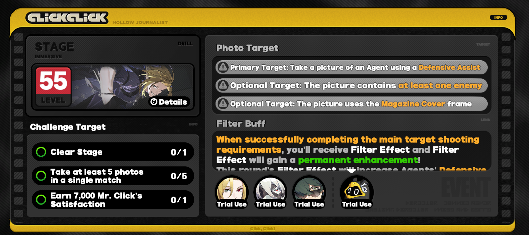 >>543981162>All Defense units should be able to block Red flashes>All Defense units should have a manual block (through either skill or attack, like Seth or Yuzuha)>All Defense units should cause an effect upon blocking (damage, buffs, etc.)>All Defense units need to scale off of Defense the same way Anomaly units do off of AnomalyThat's it. That's all you have to do to fix the class. Throw some spice and extra mechanics here and there, but with this you'd have a solid core for some team builds I'm sure.