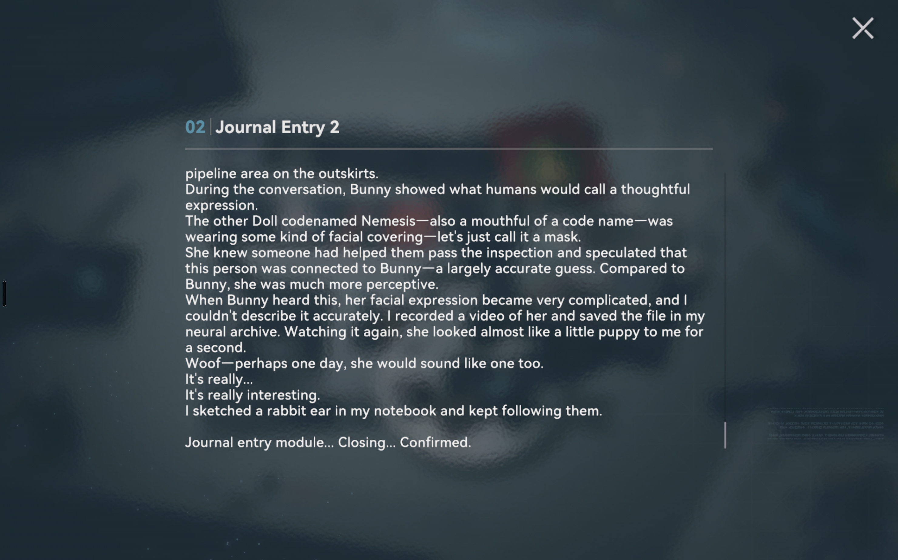 >>543986012That's where I am right now, and I actually love reading lore.. I read all of Peritya's journals about how she basically stalks Krolik and the gang all throughout ODE-1, mentioning that she "knows" Krolik somehow but can't pinpoint exactly how. I also read through Kroliks journal where she basically obsesses over fighting Peritya and wonders if she'll ever see her again, but none of it explains where they know each other from... I also went through Peritya's dusty memories section but that just involves Peritya, Groza and the Commander fighting in a simulation or someshit and doesn't really get into her past iirc.Maybe it's just not meant to be understood yet? Kinda like Groza and the foreshadowing of her neural cloud issues or whatever.. If anyone knows about more info it would be amazing if you could point me in the right direction. Thanks