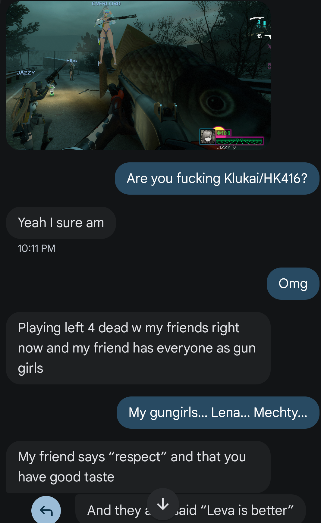 >>544057354I feel they should put more effort into giving the dolls personality. Like give us some little vn segments called "Live on the ELMO" and have the dolls interact with each other. I would prefer that than weekly tarkov mode #42