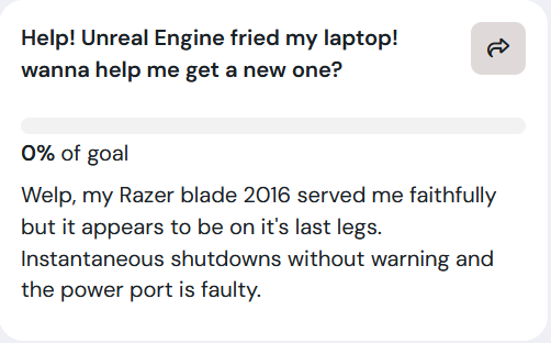 >>543983794>>543984587>pay for the development of my game(s)!>pay for my new laptop that i use to work on my game(s)!>buy a folder of screenshots i took from the pre-alpha-testing-dev build of my game(s)!!seriously i thought people who donated to dsp and ltg were crazy, giving any money to this scamming lolcow who obviously doesn't wanna do any work would be more wasteful than just setting your money on fire