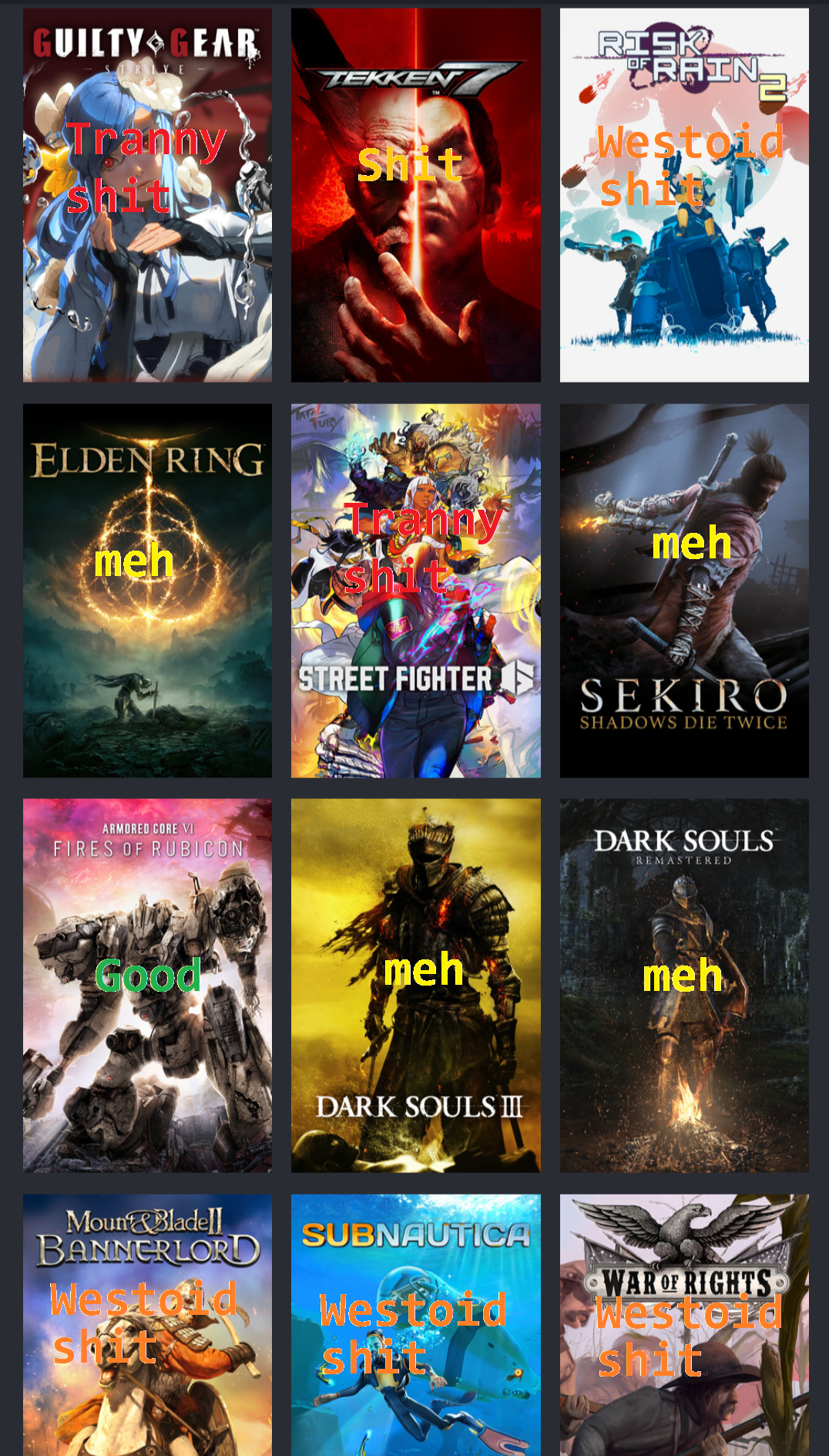 >>543987342GR short for Gay Retard. which is what you'd be if you still play tekken 8