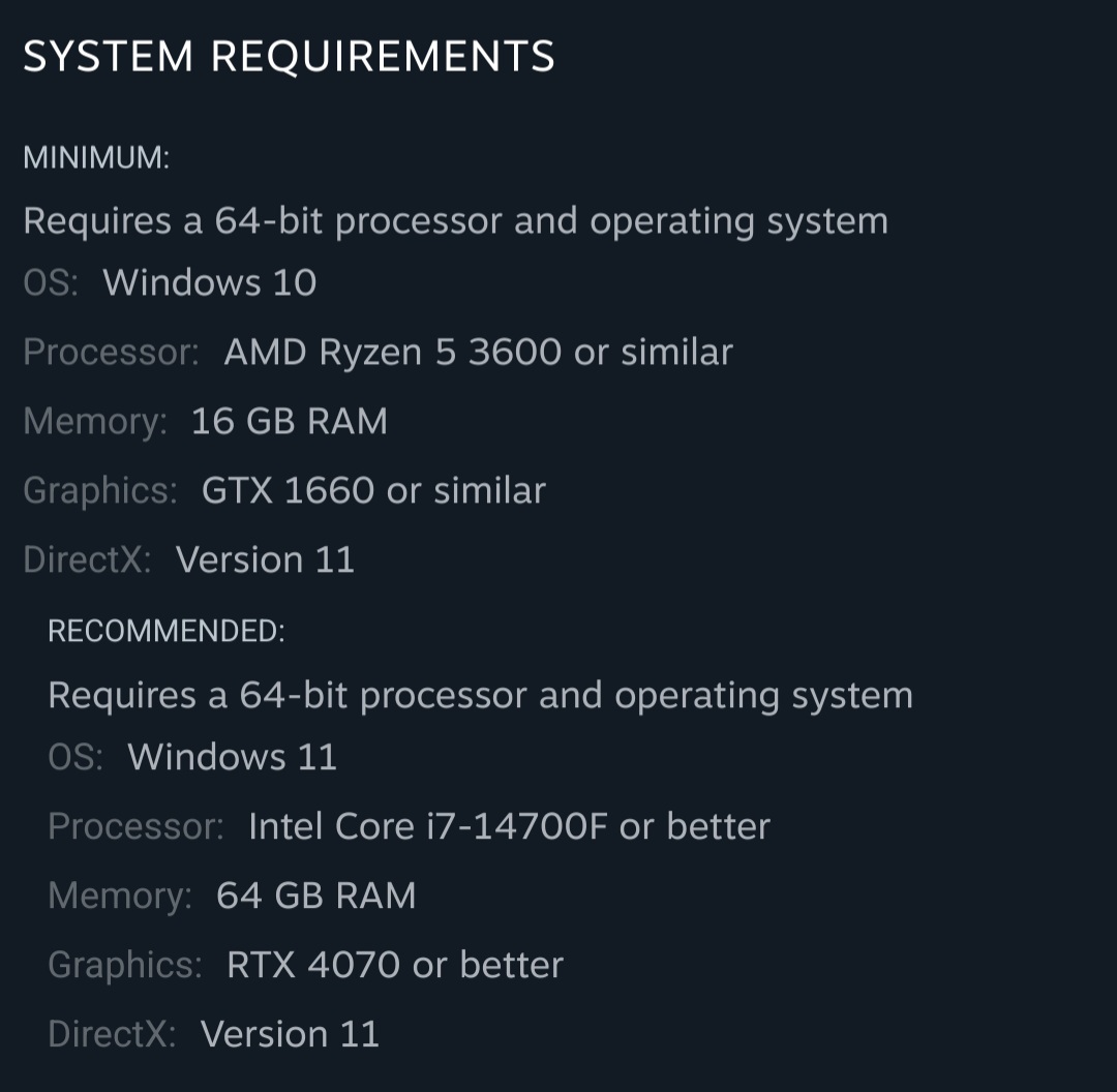 >>544209621Fuck. Guess I'll find out soon enough. 2070s is getting long in the tooth but you're basically confirming that my cpu is borderline as well.>>544211352Yeah I've got the 5700x3d, fclk 1900 with 32gb @ 3800mhz. It's mainly scoping that fucks the game for me so I haven't played much since February. I remember shit was generally janky after the customs rework and not sure how much was simply due to their spaghetti code at the time. I know their ai got more demanding and bsg poo-pooed the performance complaints at the time so who knows how much worse things will get next wipe. Recommending 64 fucking gb ram? What in the literal fuck?