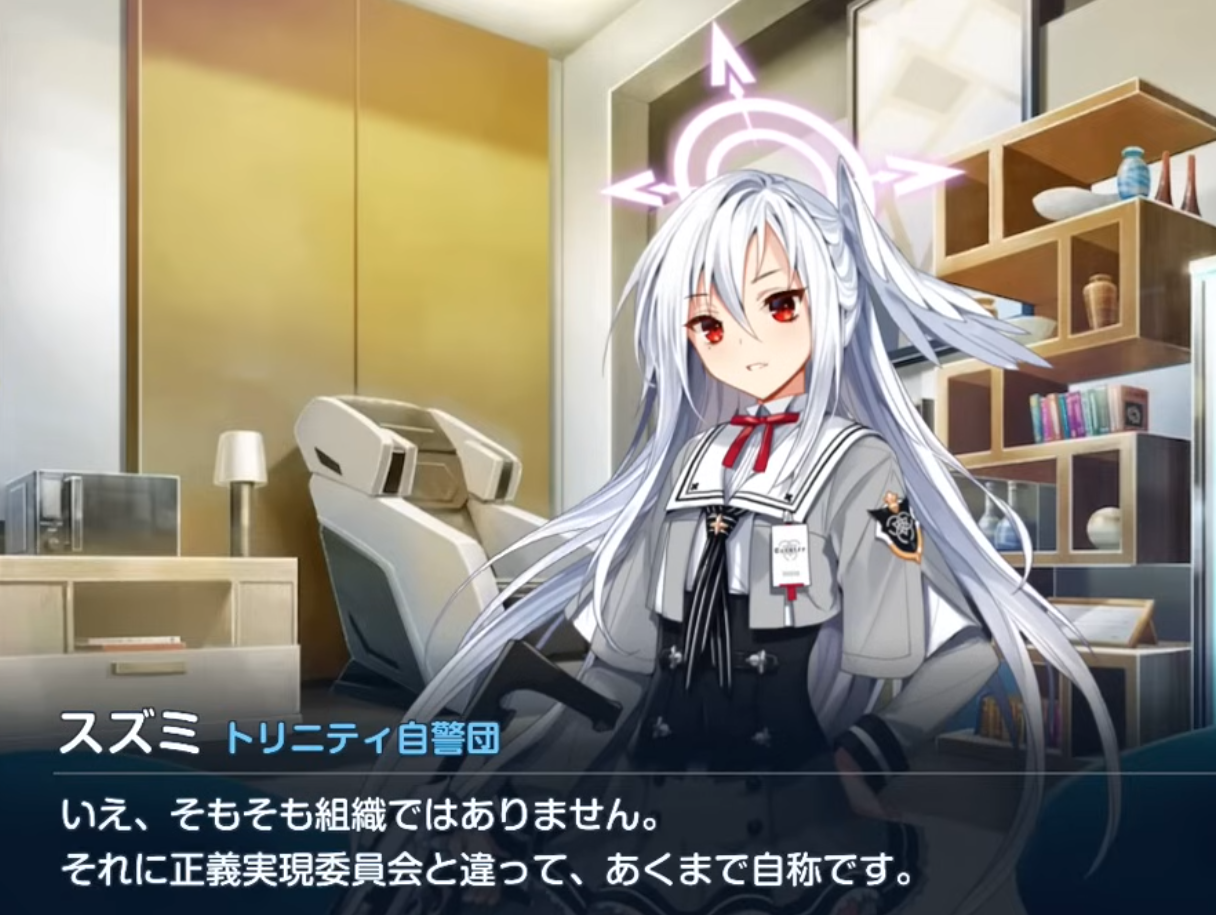 readingcurious what Hasumi thinks about the Vigilantes. It seems like she's perfectly okay with them, and even expects them to do the same sorts of things the JTF does entirely on their own.Well, they're called a club but...come to think of it, was anything specific ever mentioned about the Vigilantes? I have a vague memory of Suzumi slightly talking about the club in some story (not the recent event). They're surely officially sanctioned...? Though maybe, they aren't? Like not an official club?