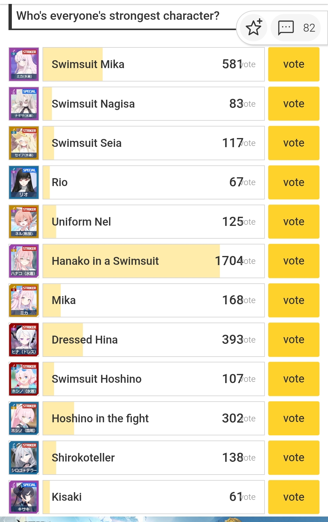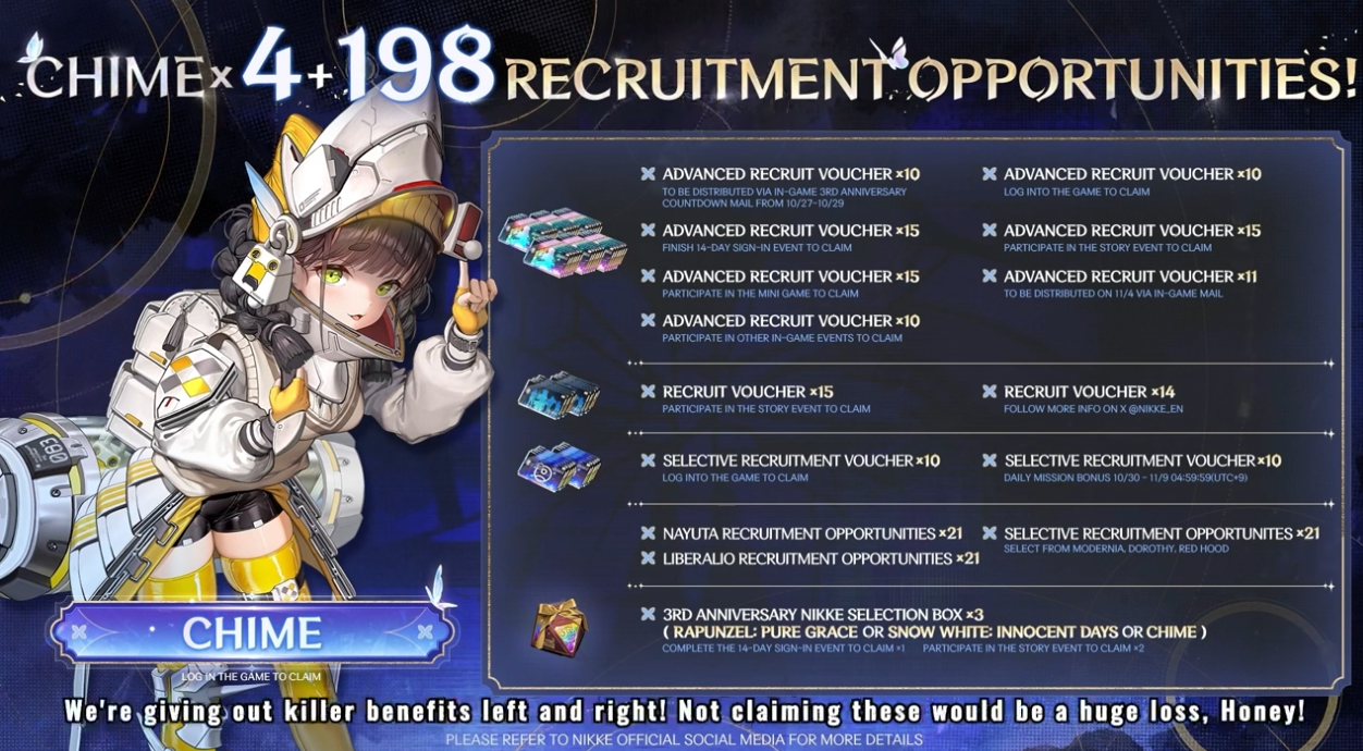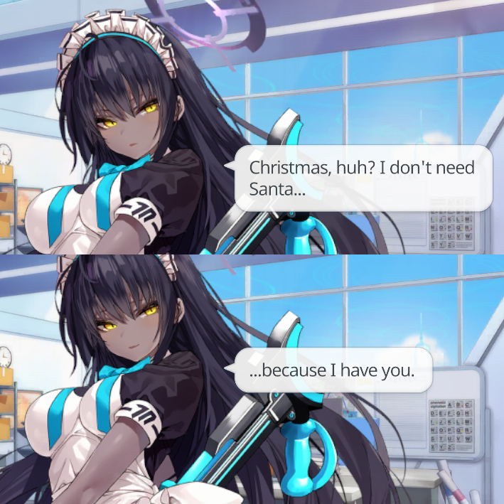 Previous Thread: >>543978405>Guides, Resources and useful links:https://rentry.org/bagguides>/bag/Circles/Clubs/Friends:https://rentry.org/holdingthebag>4koma, Manga, Side Content, PVs & Shortshttps://rentry.org/bacontent>>(JP)>Banners:>10/22 (Wed) After Maint – 11/5 (Wed) 10:59 (JST)Reisa (Magical) (3* – Limited)Suzumi (Magical) (3* – Limited)Rabu (1* – Welfare)>News:Livestream Summary: https://rentry.org/4chanBagStream10185th Anniversary Website: https://5th-anniversary.bluearchive.jpPatch notes: https://bluearchive.jp/news/newsJump/596>Events:Magical Girl Heavy Caliber: Era's Ambition and the Right to Justice – 10/22 (Wed) After Maint – 11/5 (Wed) 10:59 (JST)>Content:Total Assault: Yesod (Urban) – 10/29 (Wed) 11:00 – 11/5 (Wed) 3:59 (JST)Joint Firing Drill (Escort) – 11/5 (Wed) 11:00 – 11/12 (Wed) 3:59 (JST)Limit Break Assault: Tiphareth (Indoor – w/Elastic Armor) – 10/23 (Thu) 11:00 – 11/19 (Wed) 3:59 (JST)2x Bounty – 10/22 (Wed) 4:00 – 10/29 (Wed) 3:59 (JST)2x Account EXP – 10/25 (Sat) 4:00 – 10/27 (Mon) 3:59 (JST)2x Commissions – 10/29 (Wed) 4:00 – 11/5 (Wed) 3:59 (JST)2x Account EXP – 11/1 (Sat) 4:00 – 11/4 (Tue) 3:59 (JST)2x Lesson/Scrimmage – 11/5 (Wed) 4:00 – 11/12 (Wed) 3:59 (JST)>>(GLOBAL)>Banners:>10/21 (Tue) After Maint – 11/4 (Tue) 1:59 (UTC)Nagusa (3*)Niya (3*)>News:Patch notes: https://forum.nexon.com/bluearchive-en/board_view?thread=3189361>Events:Balancing Schale's Books with the General Student Council – 10/21 (Tue) After Maint – 11/4 (Tue) 1:59 (UTC)Waraku Festival Special Promotional Campaign! – 10/21 (Tue) After Maint – 11/18 (Tue) 1:59 (UTC)>Content:Total Assault: Geburah (Field) – 10/28 (Tue) 2:00 – 11/3 (Mon) 18:59 (UTC)Limit Break Assault: Chokmah (Field – w/Heavy Armor) – 10/22 (Wed) 2:00 – 1/17 (Mon) 18:59 (UTC)2x Normal – 10/20 (Mon) 19:00 – 10/27 (Mon) 18:59 (UTC)2x Commissions – 10/27 (Mon) 19:00 – 11/3 (Mon) 18:59 (UTC)