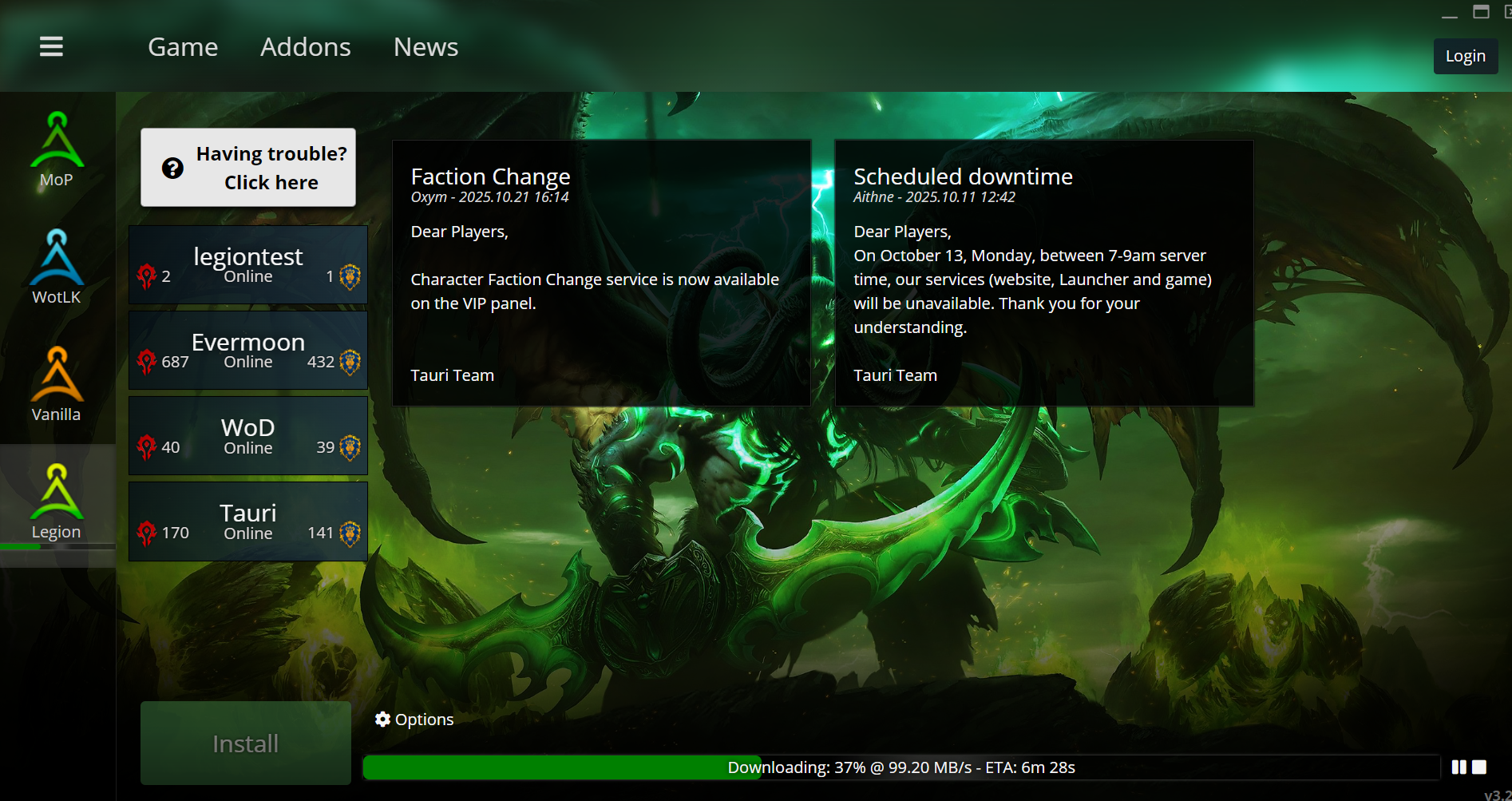 Tauri - https://tauriwow.com (WoD on Legion client, Legion content coming soon)