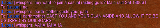 >WHY WONT YOU 4 STRANGERS RUN ME THROUGH BRD FULL QUEST RUN WITH HOJ FARM AND WINDSOR ESCORT? WHY ARE YOU BEING SO SELFISH RIGHT NOW?? I DONT HAVE A LIFE OUTSIDE THIS GAME, SO WHY SHOULD YOU????