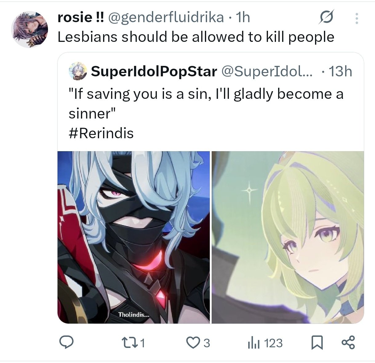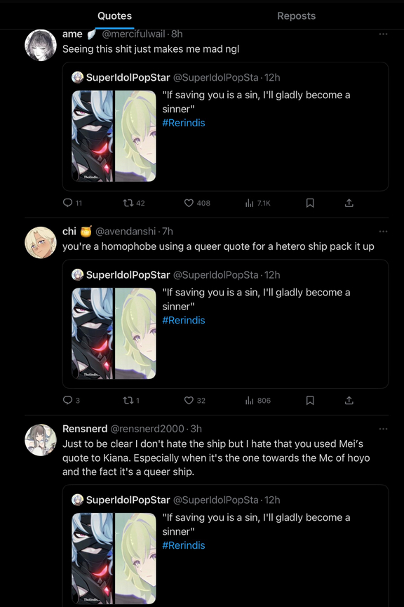 >Elysia yurifreaks: Wow I am SO gonna swipe for E6 Cyrene. Love my dyke jesus!>Mihoyo: Everyone seems to love Caelus waifubait. Turn Kiana into his waifu next