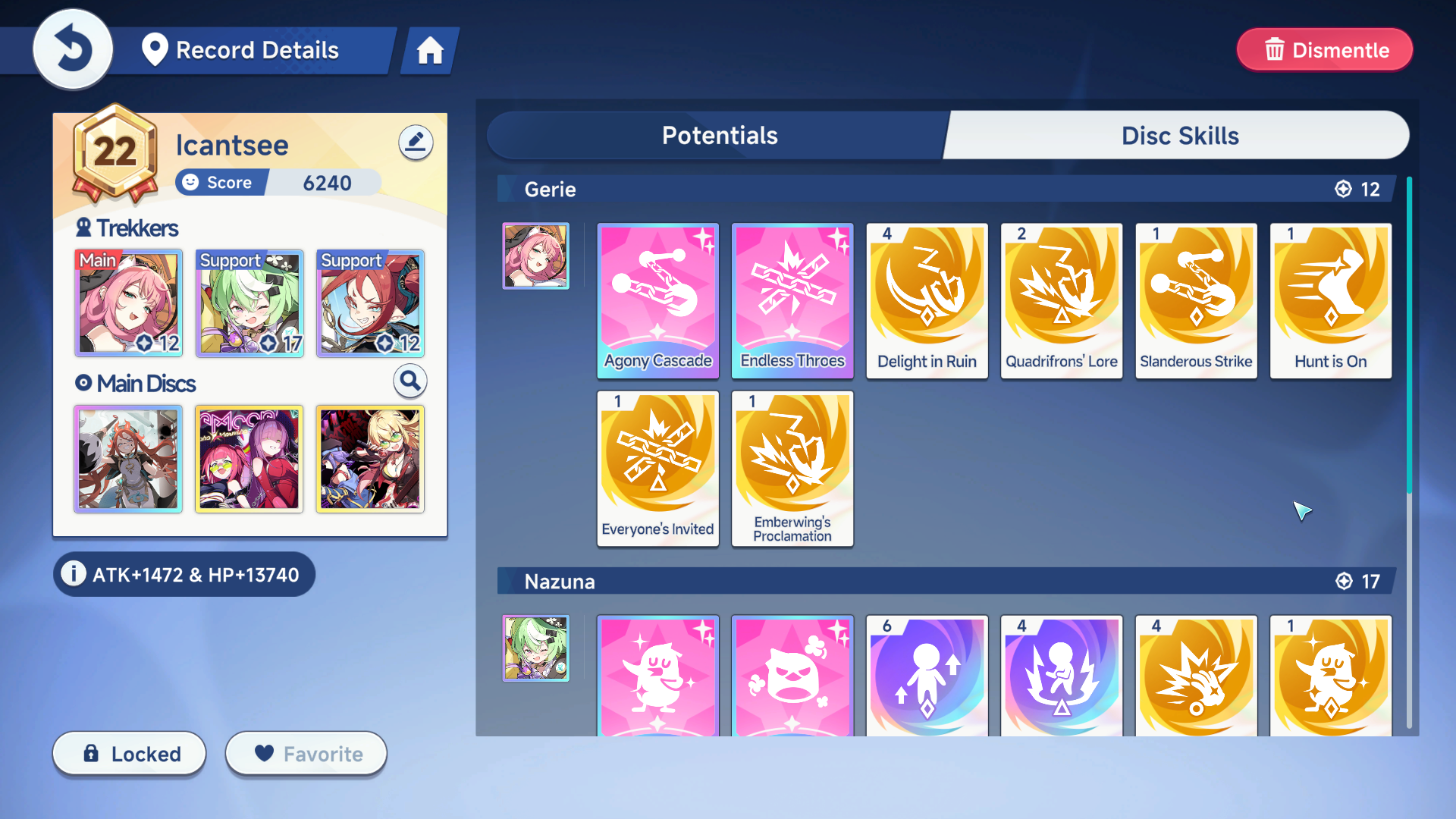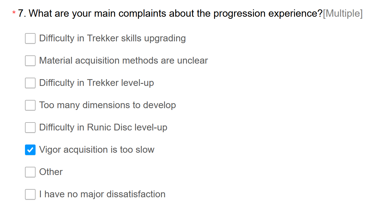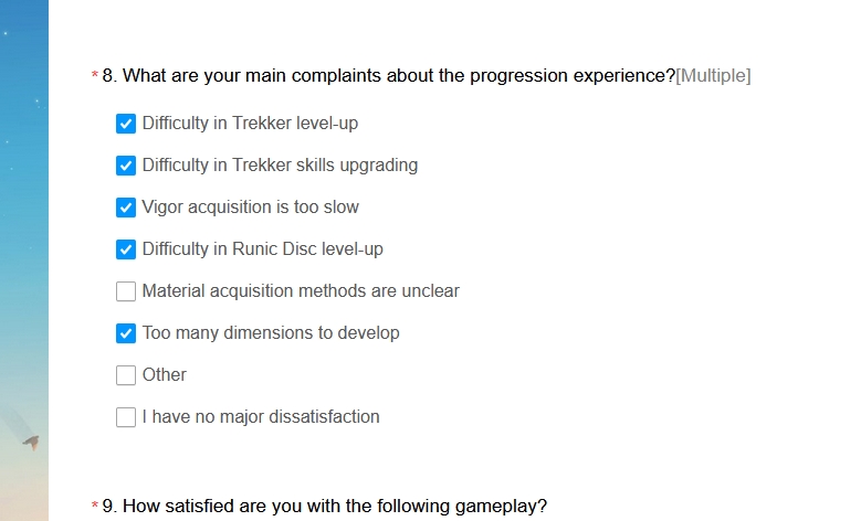 Sending this in the survey.>Ascension needs to be longer, there's a good base but the current amount of floors feels a bit short.>Emblems should be retooled into something related to the monolith as that would give player more reasons to stay in game for engagement purposes.>Current mat requirements are fine otherwise.>This way stamina can be used to slowly raise things like Trekker EXP, Disc Exp, Tier Up Materials, and skill materials instead of simply being drained to re-roll emblems which is unsatisfying comparatively.>Finally harder endgame content is welcome along with perhaps co-op modes where three players each control a single trekker and can use the trekker's entire kit.Thoughts?