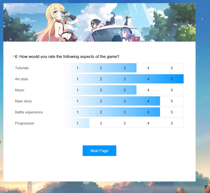 I thanked them for the game on the survey, I really like it.I put there that I wish it had more energy so I could play more and upgrade the characters faster.