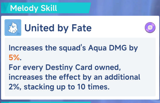 >>544098673>>544099009You still get the 5% Aqua DMG. You only miss out on the additional 2% per Destiny Card.All of the Harmony Skills work completely.