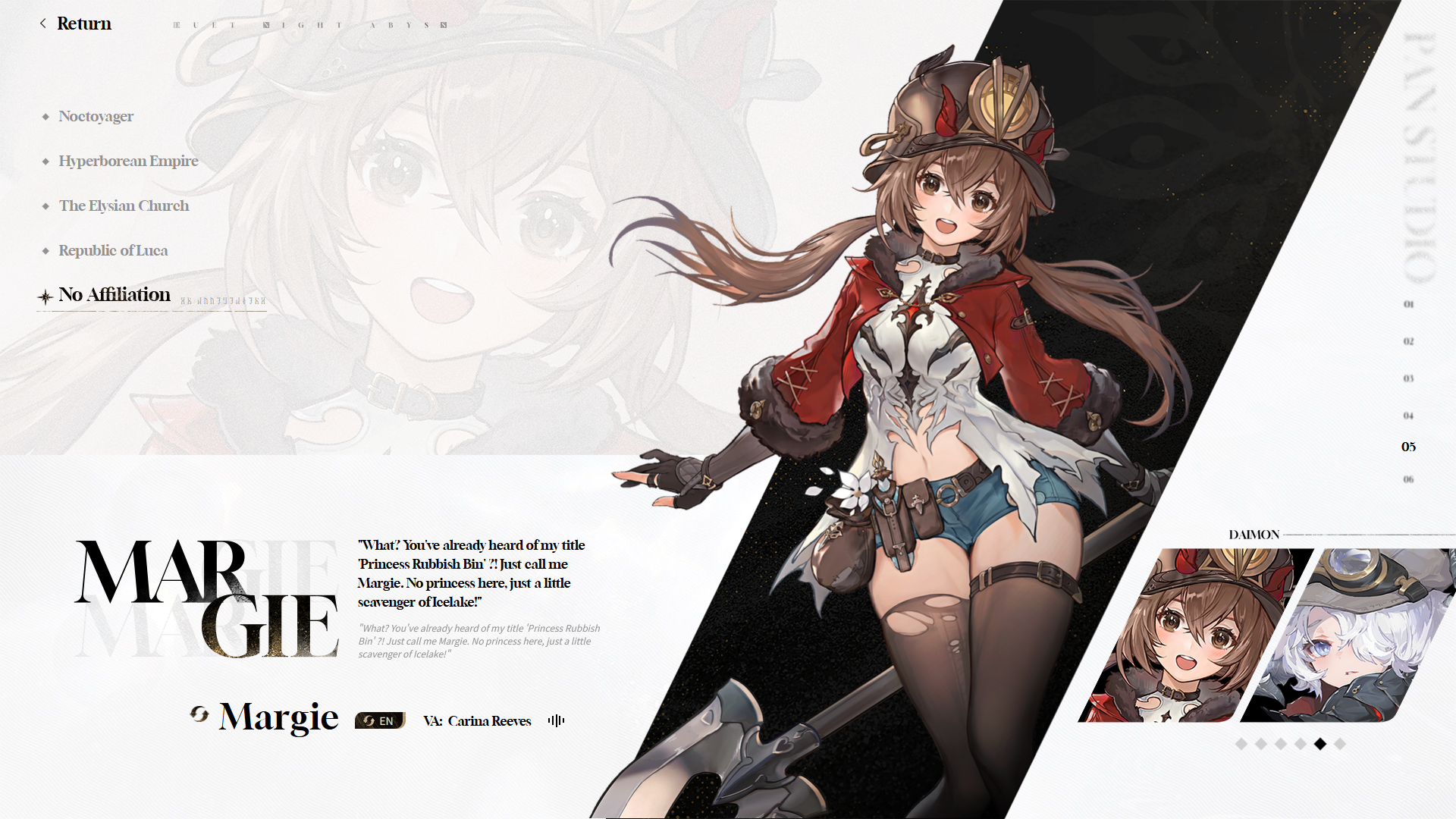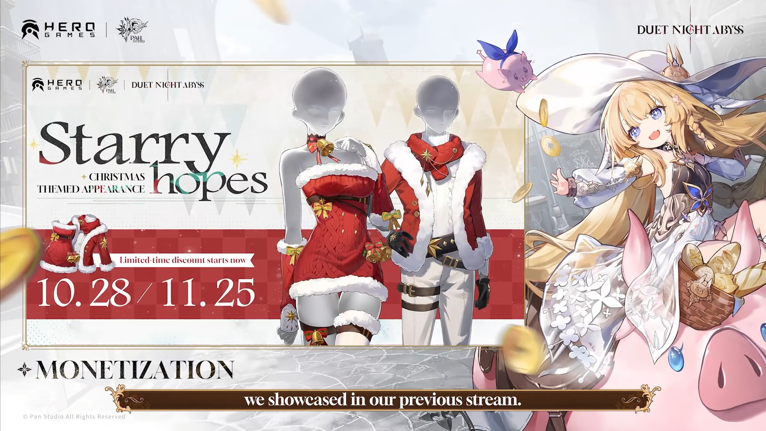 GIG Killer Edition>Pre-Download26/10 at 10:00 AM (UTC+8)>Release28/10 at 10:00 AM (UTC+8)>Steamhttps://store.steampowered.com/app/3950020/Duet_Night_Abyss/>Websitehttps://duetnightabyss.dna-panstudio.com/#/home>Twitterhttps://x.com/DNAbyss_EN>Duet Night Abyss | Global Launch Special Programhttps://www.youtube.com/watch?v=wWNBT7aoF4Y>Characters & Weapons19 playable characters and 45 melee/ranged weapons — all available for free!