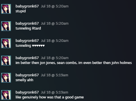 >>544448438>le board cultureim sorry, next time I will call you a tranny nigger faggot. better? :)>>544445187what are you even arguing about lmao I should keep playing billy even though every game is a boring 2 minute slaughter because "anon's games are (anecdotally) way harder? why do you need me to love billy so bad huh?