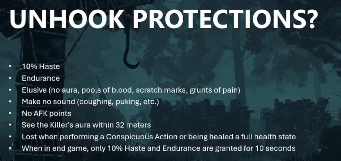 >tunneling protections will include basekit off the record and wallhax (both can be beaten by good map awareness to stop them from losing you)>reward for not tunneling is 5% haste until you use power or enter chase (things you should be trying to do immediately)This doesn’t change why killers tunnel, it just makes it more skillful to pull offIf they keep unhooking in my mouth I will keep tunneling, hate the game not the player