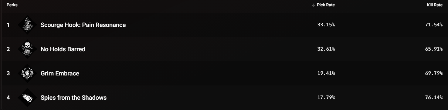 >>544169936>all survivors now have a shared pool of 4 hook stagesPlaying survivor>Why the fuck isn't this guy chasing>I'm doing gens constantly I didn't even get hooked once, why am I dying>He's just getting farmed afkPlaying Killer>Weak link hook>PainRes>Weak link hook>Surge>Weak link hook>Eruption>Weak link hook>DMS>Weak link hook>Deadlock>Weak link hook>Grim Embrace